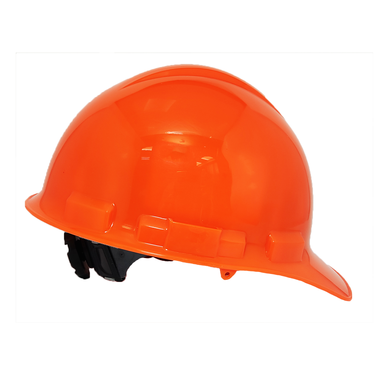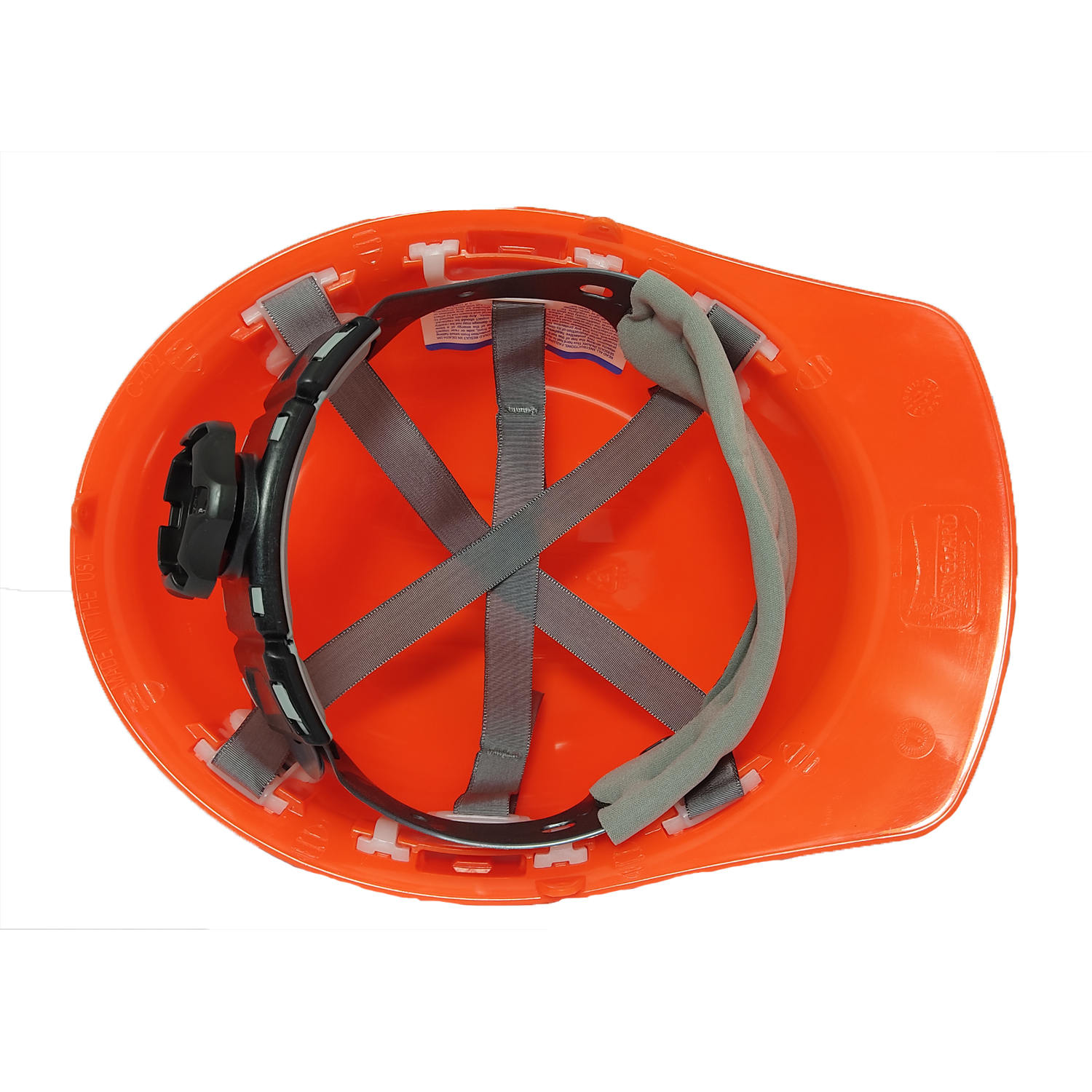 Durable polyethylene hard hat with 6-point nylon suspension. Features include UV protection, rain trough, and slots for accessories. Meets ANSI Z89.1-2014 standards.